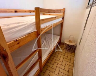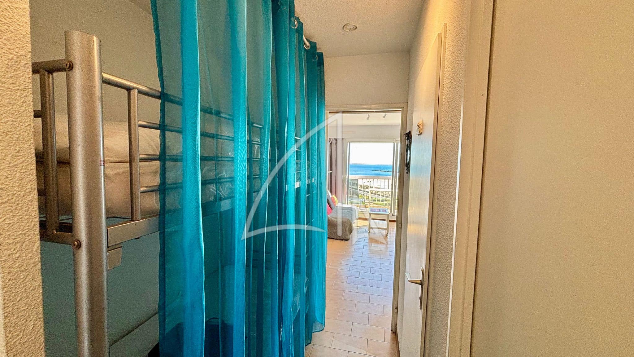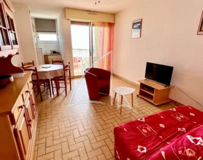 Face à la mer, cet appartement lumineux pouvant accueillir 4 personnes offre un pied à terre parfait pour un couple avec ou sans enfant(s) en quête de moments de partage. Parfaitement agencé, cet espace cosy comprend une entrée cabine avec lits superposées en 80 et un placard de rangement, une pièce de vie très agréable grâce à son bain de lumière avec un canapé convertible en 140, un coin cuisine entièrement aménagé et équipé, une salle d’eau et un WC indépendant.