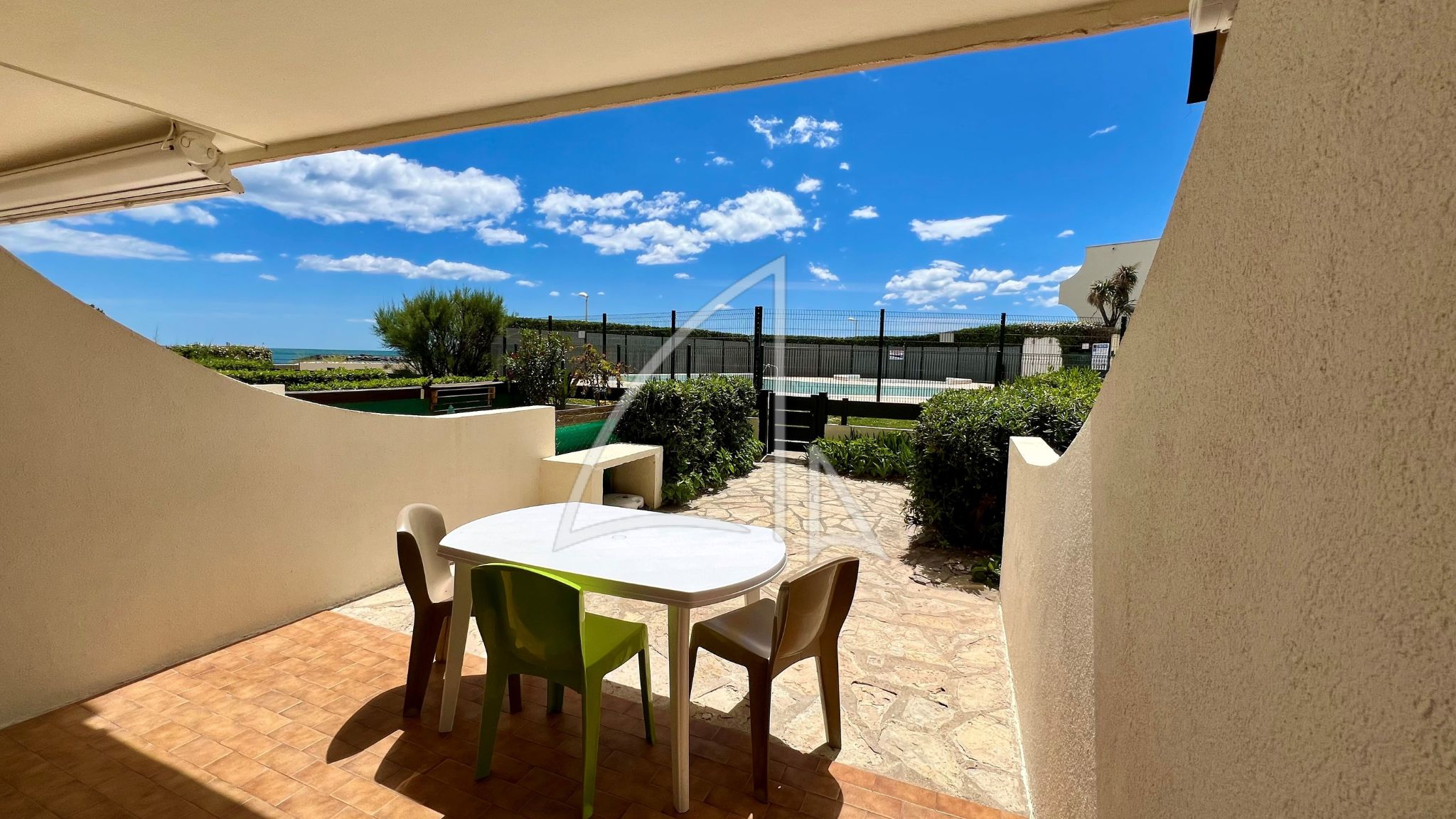 Profitez d’un accès direct à la plage, d’un espace extérieur en rez-de-jardin idéal pour les repas en plein air, ainsi que d’un accès direct à la piscine de la résidence pour des journées de détente ensoleillées.