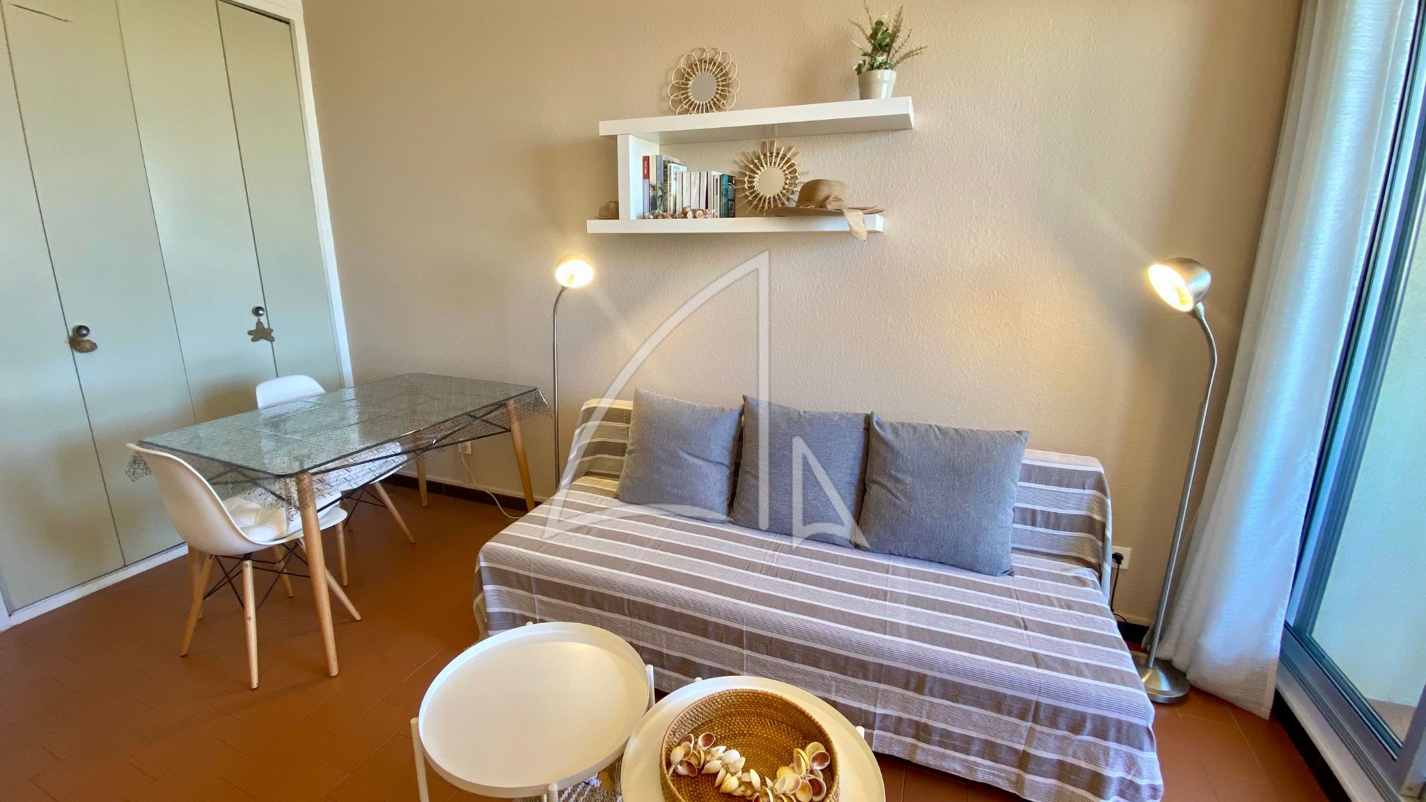 Bénéficiant d’un accès direct à la plage et au centre-ville, ce studio offre une localisation privilégiée. De plus, la terrasse donne sur l’emplacement de tirage des feux d’artifice, vous offrant ainsi une place de premier choix.
